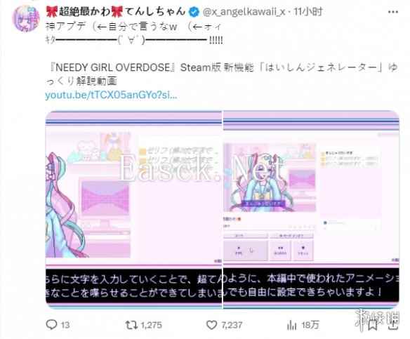 《主播女孩重度依赖》官方宣布,将为该作推送大型更新——直播生成器,本次更新将于7月15日上线Steam。 【游侠网】《主播女孩重度依赖》免费大型更新“直播生成器”演示 玩家可以通过新功能“直播生成器”自由设定台词、表情等内容,从而更方便地进行二次创作,打造属于自己的“超天酱直播”。