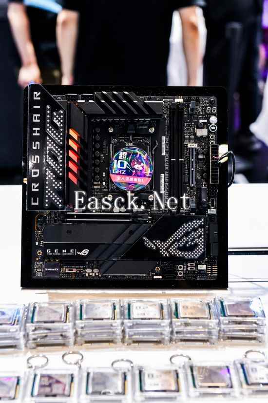 7月12日上午10点至12点,@餅哥Bing联合世界顶尖超频发烧友@Safedisk,又基于ROG MAXIMUS Z790 APEX ENCORE主板,在现场创造出超频新纪录。7月13日下午14点至16点,@普普通通Tony大叔和@极客湾Geekerwan-飘哥空降此展区,辅助现场玩家们进行液氮超频挑战,前来集邮、参与挑战的玩家接踵而至,超频排行榜单也是一再刷新,场面十分热闹。