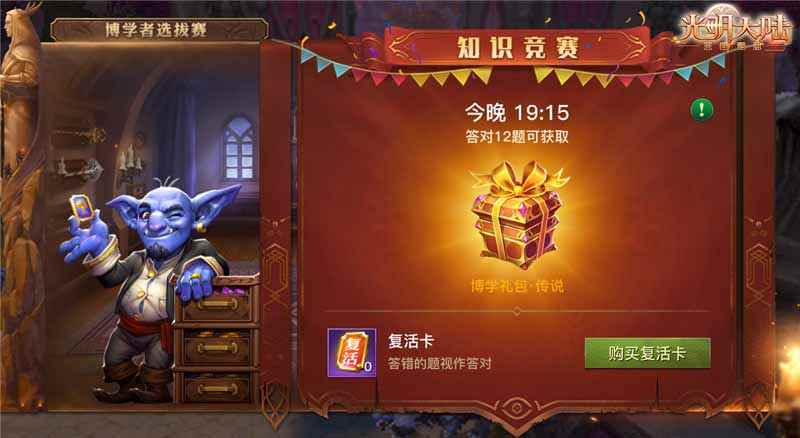 智者选拔,答题赢取奖励 截止7月31日,每晚19:15至19:25,凯伦城将举行“知识竞赛”活动,所有玩家均可参加,根据答题多少可获取对应的奖励,答对6道以上,还有机会划分晶石、金币等奖励!