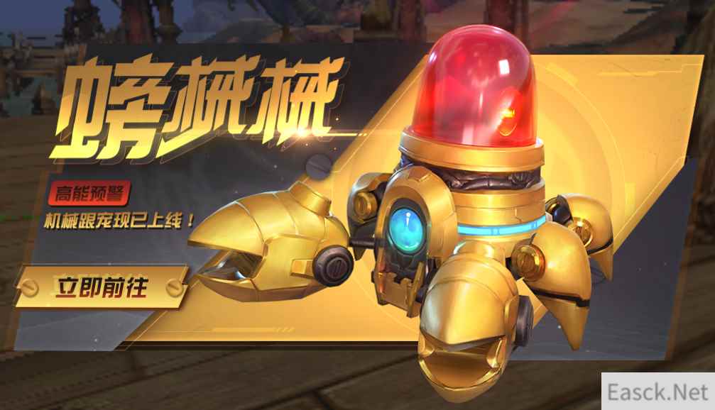 或霸气或凶狠或华丽的跟宠,深受玩家们的追捧,而大陆的疯狂科学家们也赶上了这股潮流,精心推出了螃械械跟宠。不同于之前的跟宠,螃械械的外形不再是动物,而是由神秘金属打造躯体,配合红色警示灯和蓝色探照灯,神似螃蟹但却是不折不扣的机械,巧夺天工令人惊奇。