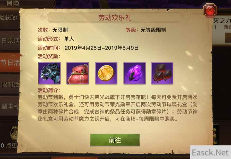劳动最光荣,战斗有惊喜 坚定的意志,非凡的胆识,过人的智慧,绝伦的实力,使你成为了守护玛瑟兰德大陆的中坚力量,但永不懈怠的勤恳奋斗,才是你引领大陆联军迎战恶魔大军的底气所在!无数次的浴血杀敌,理应在劳动节获得礼赞和馈赠!