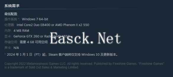 《格式塔:蒸汽与煤渣(Gestalt: Steam & Cinder)》是由Metamorphosis Games开发的蒸汽朋克风2D动作冒险类游戏。受16位和32位经典游戏启发,在一个令人惊叹的手工蒸汽朋克世界中融合了紧凑的2D平台游戏和激动人心的战斗,以及引人入胜、跌宕起伏的剧情。 与Aletheia和一群充满活力的角色一起,竞相探索蒸汽都市Canaan的秘密。击败发条魔像大军,猎杀那些在被遗忘的深渊中爬行的恐怖生物。挫败Canaan腐败的统治集团——邪恶的大议会的扭曲计划。为人类的生存而战,揭示黑暗和危险的真相,它们与蒸汽都市的根基息息相关。 以Aletheia的身份踏上Soldner的道路,作为Irkalla的精英雇佣兵,每次工作都冒着生命危险。拿起剑和枪,结合一系列的近战连击和致命的枪法,用令人震惊的技巧让你的敌人心惊肉跳。 在Irkallan黑市的肮脏摊位上追击疯狂的变种生物,跃过Fornax永恒熔炉中燃烧的熔池,击退成群的嗜血突袭者,他们在Scrap Sea的无底深渊中徘徊,寻找他们邪恶的神。 Canaan疆域辽阔,在其旋转的蒸汽中有无数的谜团等待你去揭开。Aletheia在一次例行工作出现意外后,踏上了史诗般的旅程,要揭开威胁到蒸汽都市根基的古老谜团。在穿过Canaan的路上,你要挑战强大的新对手,并与老朋友叙旧。做一些支线任务来赚取额外的报酬,深入了解在变幻莫测的时间长河中失落的历史。 或者,也许你只想在Vincent的酒吧中借酒浇愁,倾听一两个传说…… 冲刺、躲避和二段跳,避免受到伤害并保持自身完好无损。用一系列愤怒和可怕的能力武装自己,它们会随着你击败的每个敌人而变得更加强大。 花费经验值来解锁新的技能,用废料交换配件来定制你的构造,并与最可怕的生物在铜色的天空下交锋。 你听到了吗? 锤子敲击血红钢铁的铿锵声……异端邪说在古老的管道中奔腾的阴险呢喃……谜语在理智与疯狂的殿堂中回荡。听起来命运为你准备了一项任务,Soldner,是时候赚取你的废料了。 配置要求: |