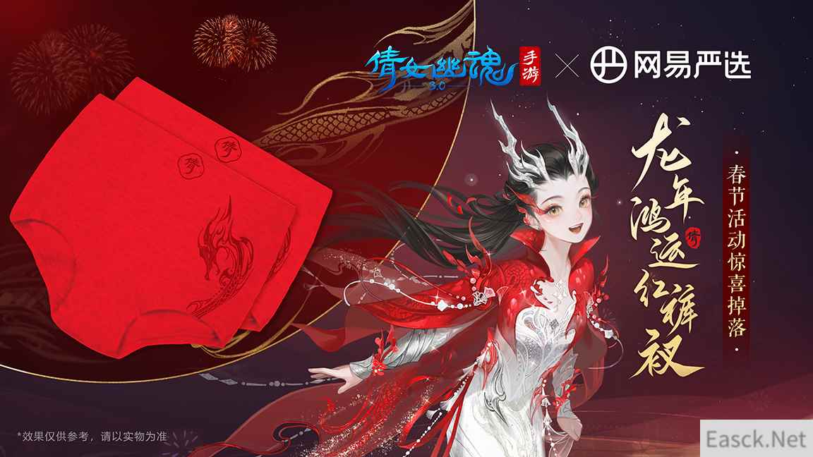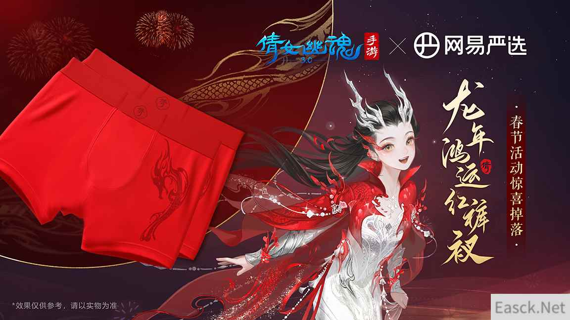 说到年俗,中国人自小就逃不过“春节红色三件套”的安利——红内衣、红内裤、红袜子。据说本命年穿红色三件套,是中国自古以来的一种民间习俗,反映了人们对新的一年里运势红红火火的美好愿望与追求,同时也承载了家人的关怀和祈愿。可以说只有最亲近的人才会给你准备红裤衩,而倩女愿意成为你最亲近的伙伴! 春节节日活动期间,倩女手游携手网易严选精心定制,为大家准备了10000条倩女手游定制款红内裤!美好的传统民俗不必羞于启齿,倩女手游不是故意整花活,而是真心希望你红红火火!