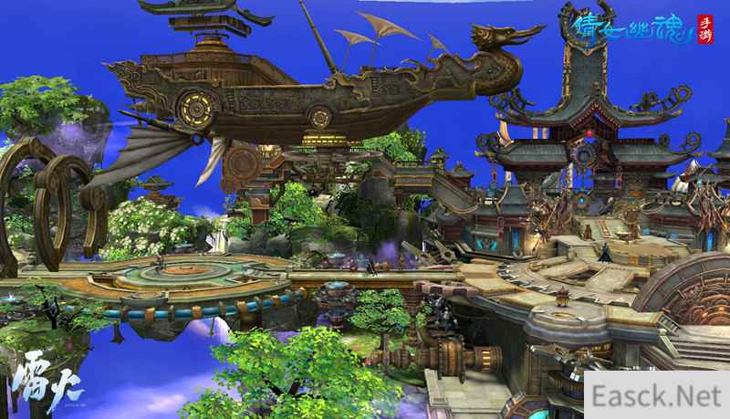 天空之城天工阁,巧夺天工 鬼斧神工天工阁,科技感十足的一方净土 悬浮在天空的天工阁,本身就是实力的最直观体现。不仅如此,这儿还有众多超越明朝科技实力的存在。他们制造了可飞翔于天空的木船,无需依靠燃气等动力,凭风可翱翔于九天,可见其传承了墨家机关术的精髓。