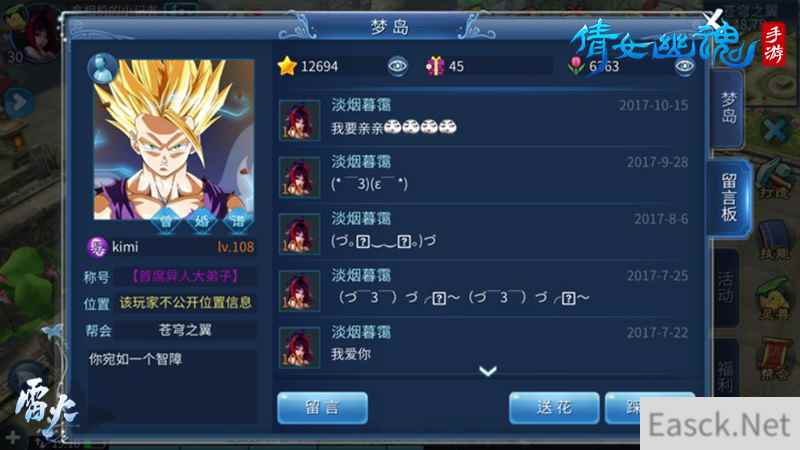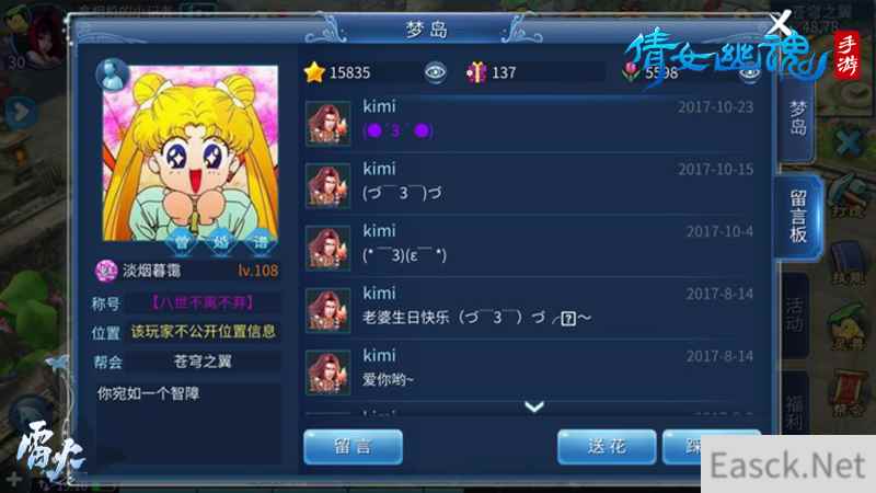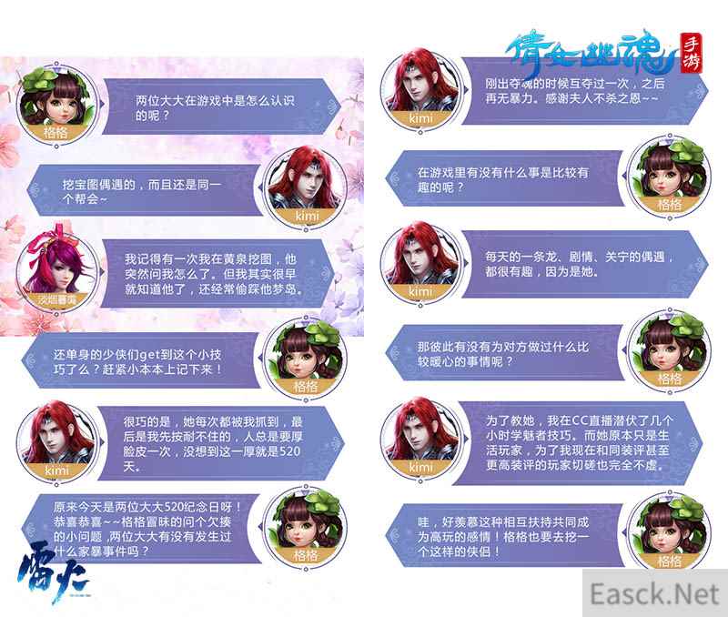 【挖宝掉侠侣?成就三界姻缘人气第一】 作为倩女手游三界人人羡慕的姻缘人气第一的侠侣,kimi和淡烟暮霭的相识更像是命中注定的缘分。二人虽然身处同一个帮会,但真正促使他们在一起居然是因为在黄泉挖宝时的偶遇,这究竟是怎么一回事呢?原来淡烟暮霭之前就会去偷踩kimi的梦岛,而每次都会kimi抓到。而借助这次偶遇,kimi主动示好,之后也两人便顺理成章的在一起了。