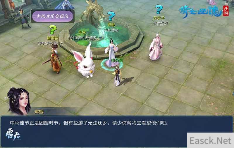 勇斗恶犬智护婵娟 活动期间玩家还可以在节日NPC处领取【此情可慰游子心】任务,为各地游子送上月饼与中秋的问候。同时活动期间签到、完成日常任务可以获得团圆礼包!