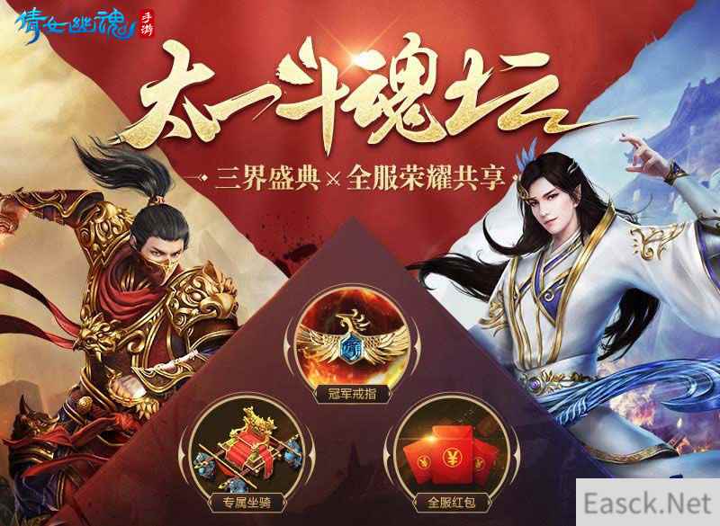 国庆礼包内含多种珍稀道具 太一斗魂战火重燃,神兵护具铸造开启 第八届太一斗魂坛重燃战火,10月1日起正式接受报名!狭路相逢勇者胜,最终获胜队伍将获得18K纯金打造的冠军戒指、霸气冠军斗魂之辇坐骑。届时还有全服奖励,让伙伴们共享斗魂王者的无上荣耀!