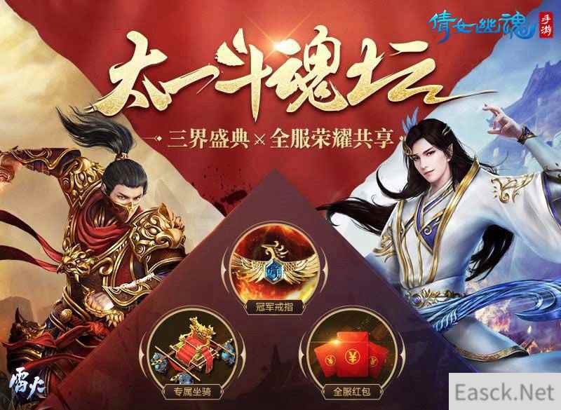 【重赏之下有勇夫,海量大奖等你来】 18K纯金打造的【太一·凤凰之心】戒指,见证着浴血奋战的英勇顽强,霸气冠军斗魂之辇坐骑,体现冠军的无限荣耀!每次战队获胜其所在服务器都将有全服红包和经验雨,冠军战队所在服务器还将获得全服幸运+10BUFF!除了冠亚军专属称号、斗魂系列时装、胜者专享胜场礼盒等奖励之外,金陵城中还将为冠军战队竖起雕像,见证激战历程!
