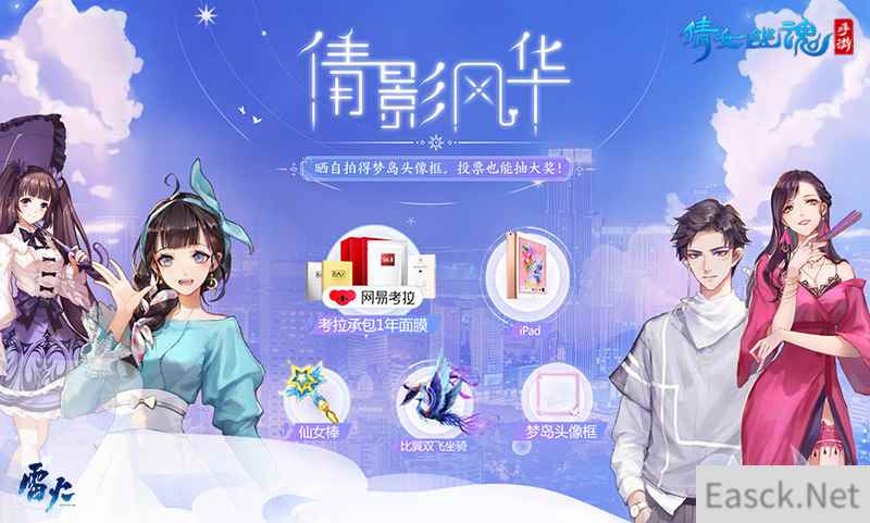 【名人堂展倩影风华,晒自拍赢丰厚大奖】 倩女手游春季名人堂活动将在4月18日开启,玩家可在梦岛或参赛页面晒出自拍,向三界展示自己的风采,或许你就是下一个倩女网红!最终入选名人堂的玩家,还有机会获得网易考拉一年份面膜、手机、iPad、仙女棒、比翼双飞坐骑等超值大奖。此外,参与投票的玩家也可以得到银票、考拉优惠券等奖励。