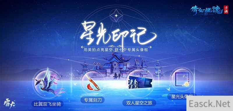 七夕时节报名星光印记活动,上传自己的截图作品还有机会获得比翼双飞坐骑等丰厚奖励。同时通过活动报名页面,玩家还可以使用明信片模板和贴纸,将喜欢的作品抄送他人。