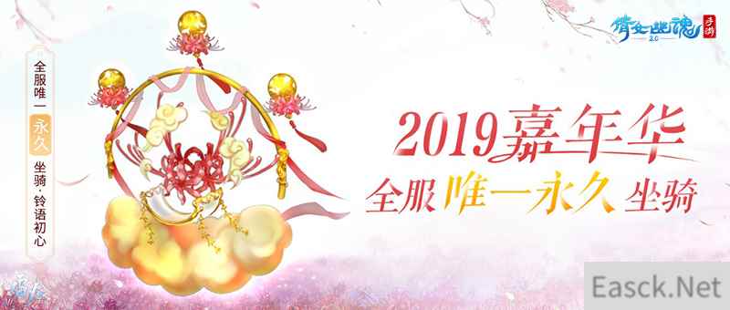 【吃喝玩乐嗨遍全场,年度计划神秘爆料】 2019倩女幽魂嘉年华精彩不止于此!集市巡游,天宫奇苑花街易市,四大板块任你游玩;银临、奇然liya、吾恩等古风大咖倾情演绎,一曲《丹青客》引爆全场;全服唯一永久坐骑【铃语初心】、iPad pro等价值万元大礼等你来拿;更有开发组重磅揭晓年度计划,神秘猛料曝光倒计时!