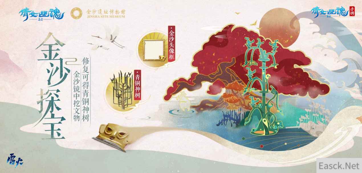 (水天一色金沙镜) 【金沙探宝,揭开金沙镜神秘面纱】 金沙遗址的发掘揭开了3000年前古蜀王国的神秘面纱,倩女手游携手金沙遗址博物馆共同开启古蜀文化“逐日计划”之旅,推出“金沙探宝”活动,让玩家能够跨越3个世纪感受古蜀国文明。