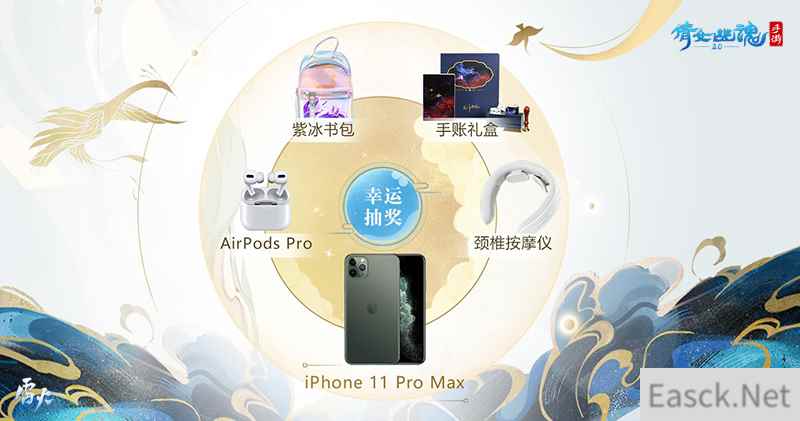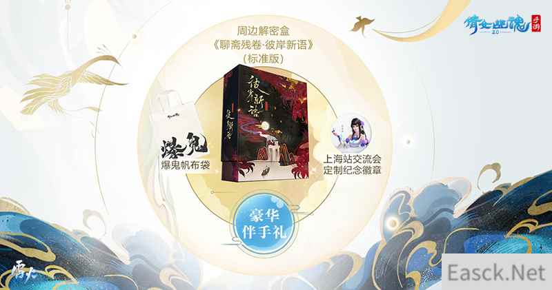(连香树下忆金沙) 本次活动线下狂欢活动福利满满。伴手礼周边解密盒《聊斋残卷·彼岸新语》标准版、爆鬼帆布袋、倩女手游上海交流会定制纪念徽章到场即可获得。现场抽奖环节更有紫冰书包、倩女幽魂手账礼盒、AirPods Pro、iPhone 11 Pro Max、颈椎按摩仪以及全服唯一永久坐骑等惊喜好礼。同时,不论到场与否,只要参与现场的一答到底活动还可瓜分5W灵玉。