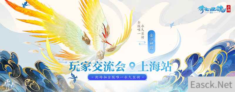 (到场即得伴手礼) 【全服唯一坐骑花落谁家,开发组现场爆料新门派】 赤目火瞳羽下生辉,金属战甲夺人眼球,倩女手游全服唯一永久坐骑【金沙神羽】耀世而来。【金沙神羽】顾名思义,其名称来源于古蜀金沙文化。该坐骑通体金色,形象参考了古代神话中的金乌,同时融入了金沙元素,具有独特的古蜀文化气息。 12月21日,上海交流会将通过现场抽奖的方式决定【金沙神羽】的归属,在场的每位玩家都有机会成为它的主人。同时活动现场开发组也将与玩家面对面交流,提前曝光新门派内幕,讲述倩女手游与金沙遗址的更多故事。