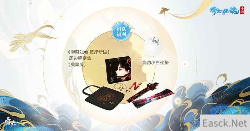 (现场活动福利派不停) 【组队报名福利加倍,倩女新服今日开启】 本次交流会开设了单人与组队两个报名通道,玩家可根据实际情况选择,组队与否不影响受邀概率。若选择组队报名,交流会当日全员到场即可获得伴手礼并参与现场抽奖活动。队长可独享周边解密盒《聊斋残卷·彼岸新语》伴手礼升级典藏版,队员额外获得海豹小白坐垫。