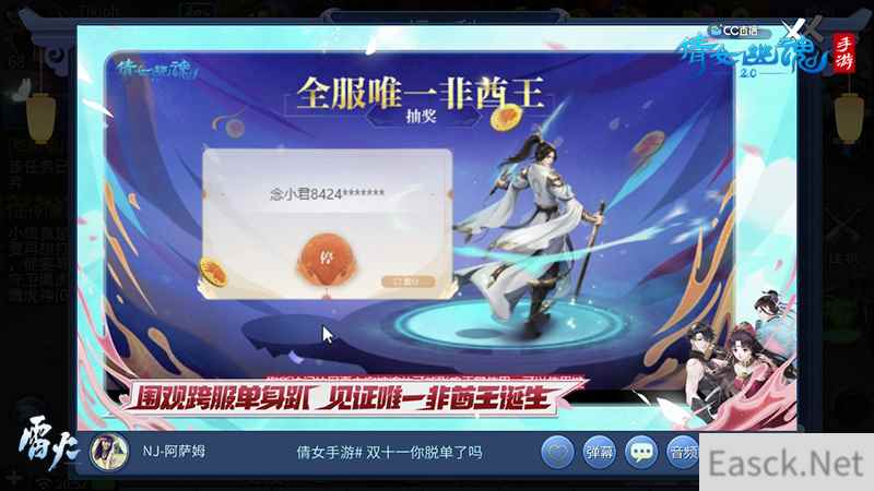 (全服唯一非酋王诞生) 直播过程中还从全服非酋4级玩家中抽取了备受期待的全服唯一非酋王。最终由来自【帝都风云】的玩家【念小君】幸运摘得了这一奖项,将9999绑定灵玉、9999元宝、爆鬼520关爱、金色幸运称号、双十一最新周边礼包等15项特权奖励收入囊中!
