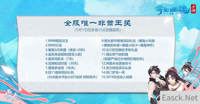 9999灵玉15项专享福利加身,倩女手游全服唯一非酋王诞生!