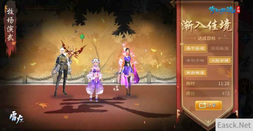 (校场演武扬军威) 校场演武场景中会刷出多批小怪,玩家可以采用特殊策略快速消灭小怪并达成副本目标,未采用特殊策略将无法达成副本目标。击退全部小怪后,最终Boss将会出现,击败Boss后完成挑战。