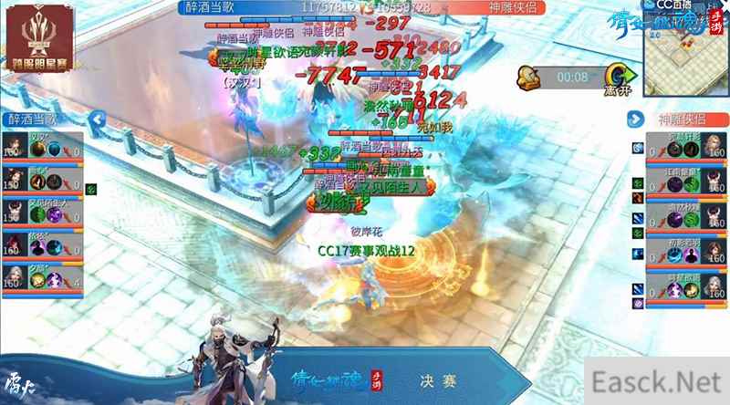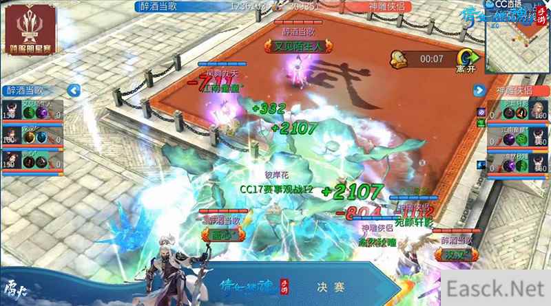 (1v1对战精彩打斗场面) 3v3赛点局中,【神雕侠侣】队伍采用双奶妈阵容,而【醉酒当歌】队伍派出侠客、奶妈和画魂迎战。侠客放【汉汉*】紧盯神雕侠侣【宛颜轩影】,限制其输出空间。同时,己方画魂【画心*】输出环境则更加良好最终【醉酒当歌】以更高的伤害量锁定胜局,为本次明星赛画上了一个圆满的句号!