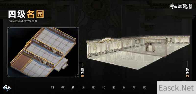 【房屋精装提升精致度,室内室外焕新重塑】 全新家园系统在家园外墙及建筑外观上亦有升级:家园焕新后,所有房屋建筑与家园外墙全面优化,整体精致度将显著提升。建筑类还额外支持围墙外观更换,玩家可自由选择装修风格。除了家园室外外观的迭代,室内也有了全新的设计:经过开发组的优化升级,室内可实现360度环视,原来的纸窗也进行了升级,玩家伫立窗边时可将江南美景尽收眼底,还能解锁多种不同主题的新款墙纸地面,使得室内装修风格更加多样。