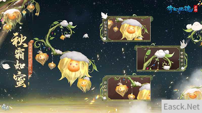 倩女手游十一月全新时装【金风浅浅】将于11月17日甜蜜登场!四款异色时装任君挑选,每一款都拥有独一无二的气质与风韵,裹带着浓浓的秋意席卷而来。更有可爱讨巧的绿藤灯笼果坐骑【秋霜如蜜】同步上线!小伙伴们快换上甜美的新装与乖巧的灯笼果一同探索三界吧!