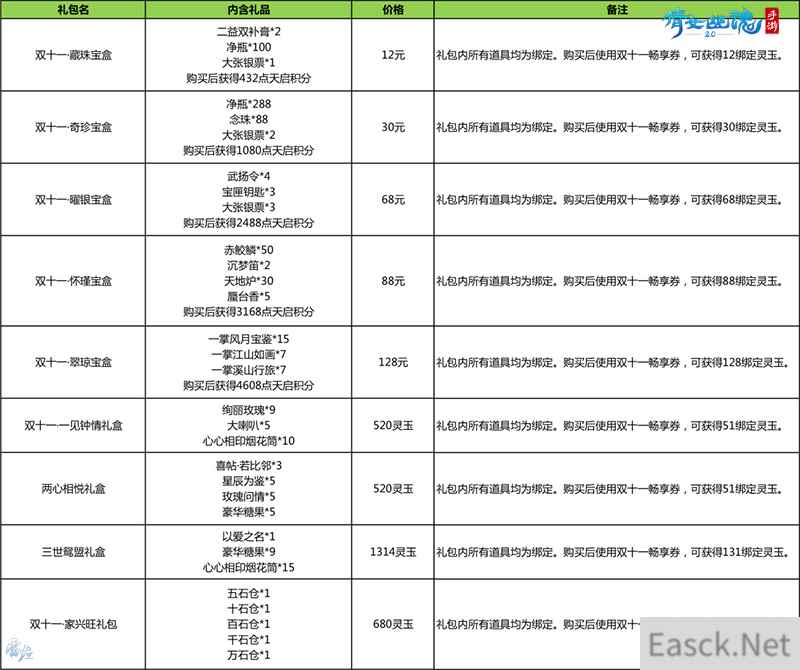 【抽奖免单返还灵玉,折扣礼包福利上架】 11月3日-11月13日,玩家累计在灵玉商城消费1000灵玉以上即可参与抽奖!11月14日12:00准时开奖,全服抽取幸运儿获得不同比例的消费灵玉返还,甚至有机会获得全额免单!参与即可获得【免单运来参与礼包】,其中除元宝、银票等奖励以外,还有概率获得1级金刚钻、宝匣钥匙等珍贵道具!