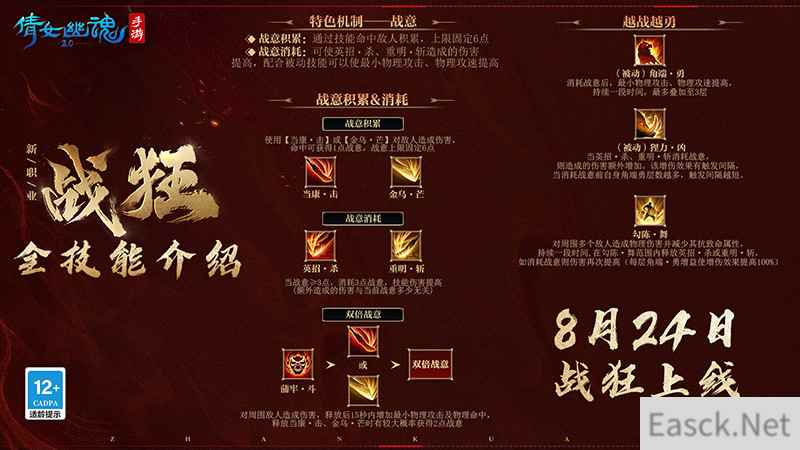 【定点位移便捷作战,贴脸输出霸气威猛】 不仅攻守兼备,【战狂】还拥有定点位移,可以贴脸输出,通过技能【狰兽·跃】可以跳跃至敌人身前,降低敌人移速。被动技能【囚牛·锁】还能对敌人定身。至于玩家们对【战狂】的其他疑惑,如【战狂】究竟是不是“近战偃师”?【战狂】有哪些天赋效果?【战狂】有没有最佳输出逻辑和加点推荐?相关答案敬请期待8月24号【战狂】正式上线! 【关于《倩女幽魂》手游】 新一代国民手游《倩女幽魂》是《新倩女幽魂》端游的官方手游,拥有端游级唯美画风与人设,传承经典玩法!传承传统文化。三界不老,我们不散!倩女幽魂手游婚礼系统唯美迭代,全新三生湖浪漫来袭! 【关于网易大神】 网易大神是网易游戏旗下的精英玩家社区。这里汇聚了广大精英玩家、游戏圈红人、行业大咖,集合了网易独家的官方资讯和福利趣闻,旨在为玩家打造一个丰富的游戏兴趣社交圈。玩家可以在网易大神与游戏中的好友实时聊天、多元互动;以游戏会友,结交更多游戏同好,和大神一起发现更多游戏乐趣。 |