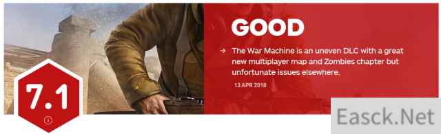 7.1分《使命召唤14:二战》DLC战争机器评分出炉