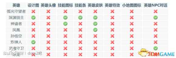 过去一个月中,V社更新了3个新英雄和一个旧英雄,进度是可喜的。不过还有有一些大家喜欢的英雄,比如魂狩、炸弹人等等还没出,那现在这些英雄的进度如何,让我们一起看看。 首先是这次V社冬日活动的DOTA2雪球镇 ![]() 过去一个月中,V社更新了3个新英雄和一个旧英雄,进度是可喜的。不过还有有一些大家喜欢的英雄,比如魂狩、炸弹人等等还没出,那现在这些英雄的进度如何,让我们一起看看。(资料来自CYBORGMATT的博客) ![]() 首先来一个剩下英雄的制作进度表 打钩是已经有的 打叉是还没的 如果一个英雄全部都是打叉 说明那个英雄还没开始动手制作根据进度表 大家可以看到 目前大屁股(深渊领主)是最接近完善的。 深渊领主设计图