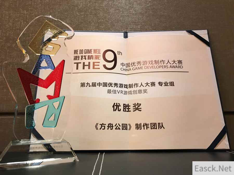 《方舟公园》制作团队收获最佳VR游戏创意优胜奖;
