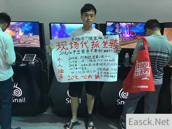 自由狩猎的猎龙玩法在本次《太极熊猫3:猎龙》的CJ试玩区收到玩家的一致好评,自由探索激情狩猎的猎龙玩法吸引着一批又一批的玩家。就连小姐姐们都难以抵挡《太极熊猫3:猎龙》的魅力,按耐不住想要在伊瓦兰斯狩猎坐骑的心情! 一位玩家看中了这一火爆场景中蕴含的商机,居然在次日带着一张海报,举牌开始张罗起代捉坐骑的生意!