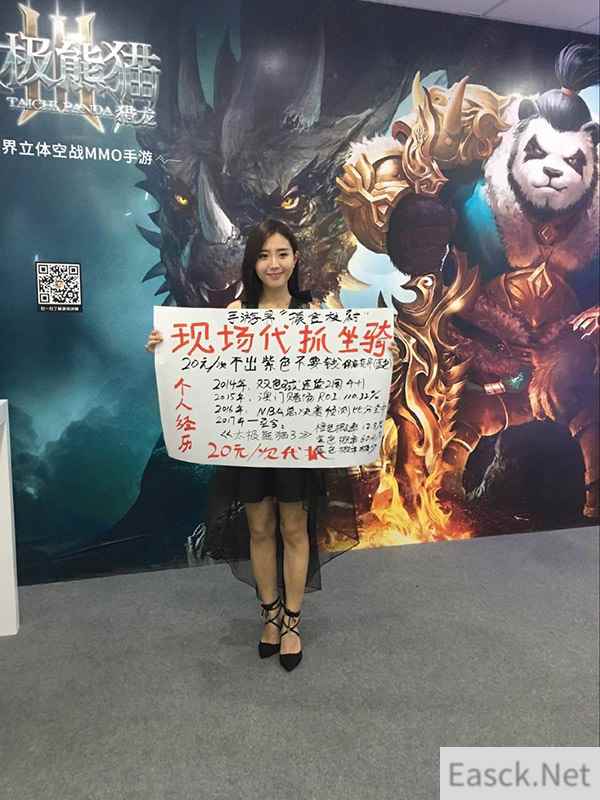 ChinaJoy(以下简称CJ)《太极熊猫3:猎龙》火热试玩现场为玩家带来了自由探索激情狩猎的大世界MMO游戏体验,就连showgirl(以下简称SG)也沉迷其中,而在这火爆情形之中,惊现一位玩家,竟举牌公开叫卖代捉坐骑!?
