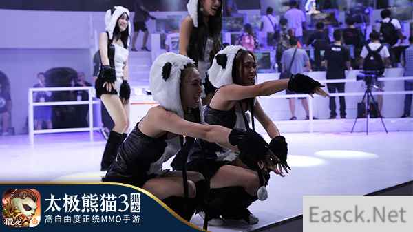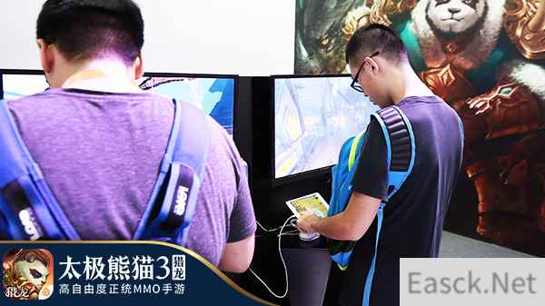 精彩试玩与小姐姐狩猎不停 玩家在现场能够通过展区提供的iPad mini4体验到《太极熊猫3:猎龙》高自由度的游戏模式,在开阔的大世界中骑乘坐骑自由探索,匹配队伍挑战强大副本BOSS,经典MMO模式与特色猎龙玩法相结合,给玩家最好的游戏体验。还有专属SG手把手指导玩家在游戏中进行冒险、狩猎,小姐姐数量有限,先到先得(并不)!