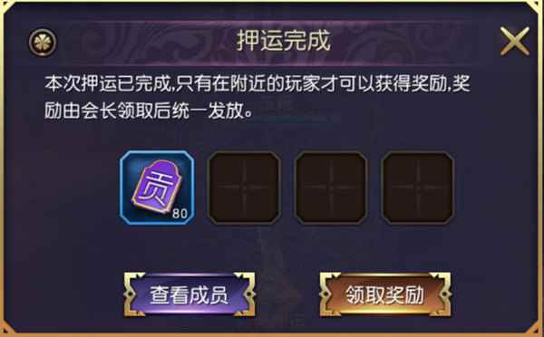 双倍收益,赚取丰厚财富 值得一提的是,押运车辆品质越高,带来的收益和风险也越大,同时《太极熊猫3:猎龙》的公会押运玩法中,每天晚上还有双倍押运时间,为了获取更高收益,如何选择合适时间参与公会押运,并集结公会上下的力量保护镖车,在规定时限安然无恙的到达目的地来获取丰厚报酬,不得不说是一个巨大的挑战!而在完成押运任务后,系统给与的兑换奖励和游戏内的流通财富也是极大的诱惑。