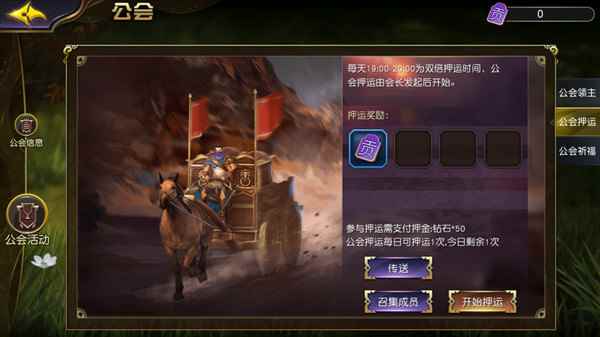 合力押运,保护公会财产 《太极熊猫3:猎龙》公会押运玩法中,在支付了一定数量的押金之后,公会成员们就能加入到此次押运任务当中,注意一天一次的押运只有会长的领导下才能参与,玩家们务必不要错过这个全公会齐心合力的集体活动。 值得一提的是,由于货物价值不菲,各路敌人都将对公会押运的车辆图谋不轨,无论是野外强大的怪物,还是敌对阵营的恶党,参与押运的公会成员需要齐心协力才能战胜对手,保护镖车不受损害,最终完成此次押镖。
