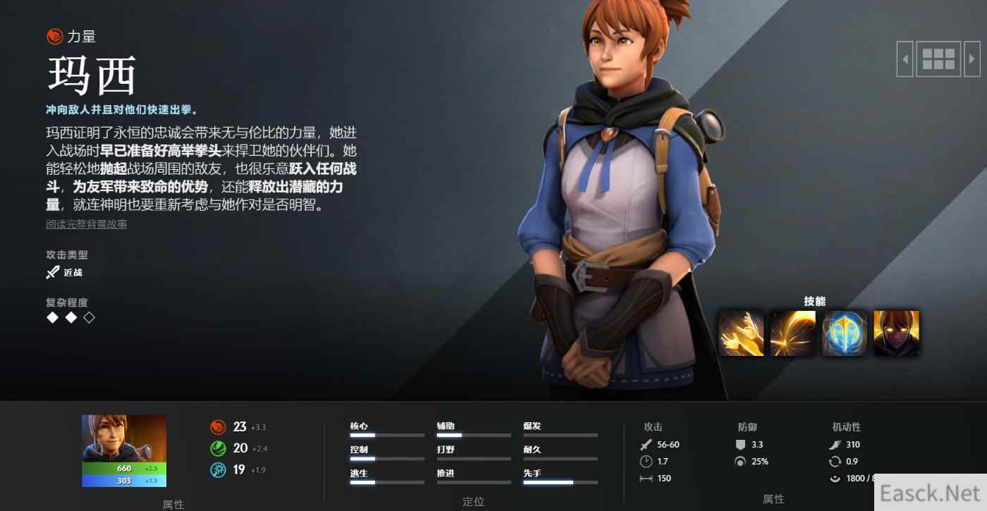 新英雄玛西是一位拥有位移和控制的近战核心/辅助角色,功能十分地多样化。 玛西证明了永恒的忠诚会带来无与伦比的力量,她进入战场时早已准备好高举拳头来捍卫她的伙伴们。她能轻松地抛起战场周围的敌友,也很乐意跃入任何战斗,为友军带来致命的优势,还能释放出潜藏的力量,就连神明也要重新考虑与她作对是否明智。