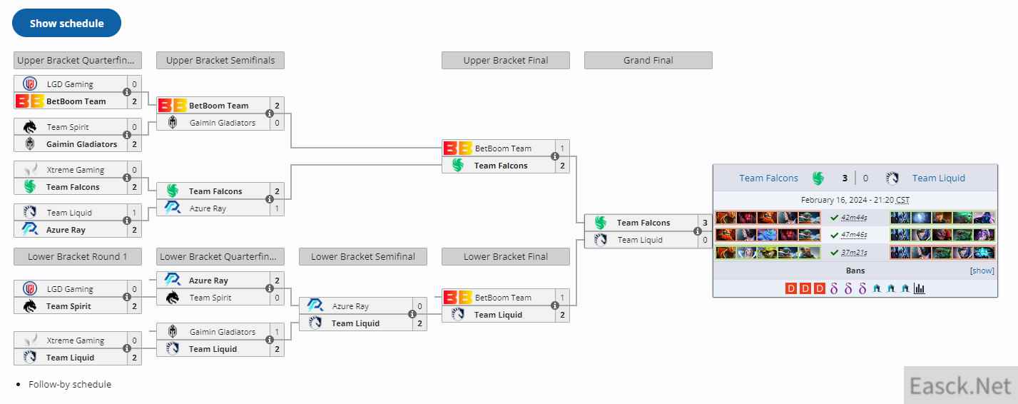 然而,坐等Liquid的Team Falcons技高一筹,两届TI冠军教练2000哥感觉已经把Liquid研究透,他们的BP,运营,团战的配合更好,把液体打了个3:0,出乎所有人的意料。