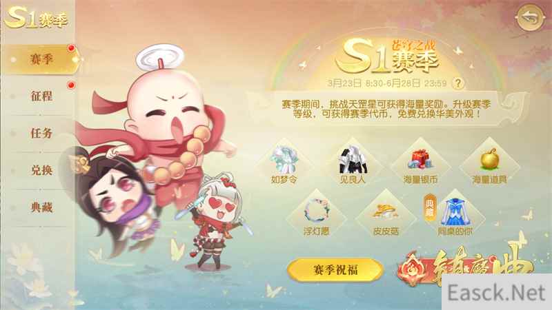 赛季玩法到来,外观、道具等你拿 《镇魔曲》初心服全新“S1·苍穹之光”赛季,也于今日同步开启。天命者们参与其中、完成赛季征程内的任务、参与赛季战斗等均可累积经验、提升赛季等级,收获永久外观、各类珍稀道具奖励。同时《镇魔曲》还为参与赛季的天命者们准备了多种全新玩法:战斗祝福、赛季药剂等应有尽有,让天命者们拥有更灵活的策略选择,展开一场场更激烈的对决!狭路相逢勇者胜,是时候冲击赛季王者尊位了!