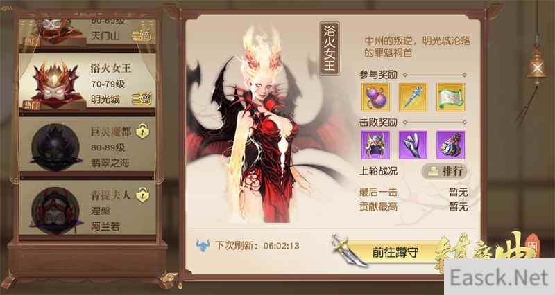 浴火女王、装备精炼,更多玩法全面上线 除了等级上限突破、全新玩法“武神绝境”,《镇魔曲》初心服大版本更新后还有许多全新内容到来:每天中午12点45分及晚上21点45分,浴火女王都会出现在明光城中,挑战成功就有丰厚奖励领取,排行榜上的天命者还能收获额外奖励!此外,装备精炼玩法正式开放,70级紫装打造概率大幅提升,更有武者录开放全新区域供天命者们挑战、收获更多奖励!