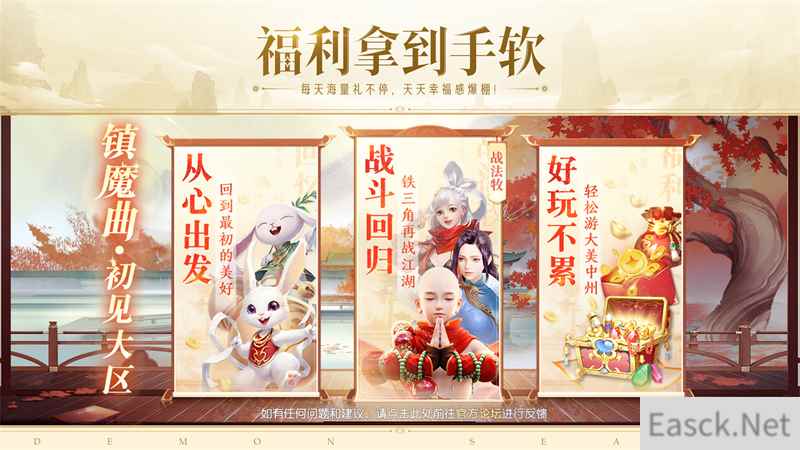 有温度的角色,送上沉浸的角色扮演 战斗在离神最近,与魔比邻的极乐净土。你是否还记得,当年的这段描述?2022年1月7日,《镇魔曲》五周年初心服将正式上线,取消了仙身、梦境、御龙、玩具、万象、神格等多达15个的系统玩法,还你一片最纯粹的角色扮演净土! 昼夜交替、阴晴雨雪、道旁积水……没了庞杂的系统玩法烦扰,你可以沉浸在这点滴细节汇成的真实世界里,回味八部众独特的故事与鲜活的人设:慈悲济世的圣修、独守北疆的夜狩、赤诚尽忠的龙将……化身其一,重建明光城吧!