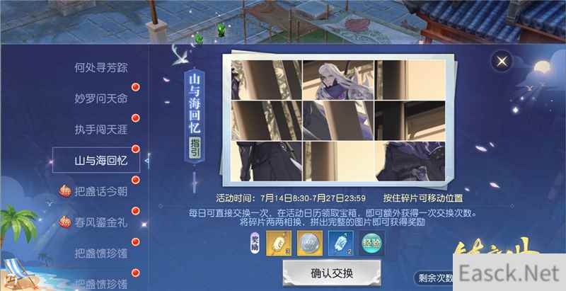 还原图片、今朝把盏,丰厚奖励别错过 捉完迷藏,天命者们也别急着离开,庆典上还有更多有趣的活动等着你!“山与海回忆”里,你可以交换还原图片、收获各类好礼。