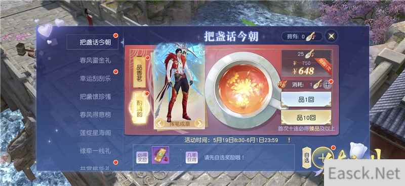春风得意时,把盏话今朝 挑战完毕后,天命者们别忘了品一盏香茗、参与“把盏话今朝”活动,最强“臻品”奖励等你领取!其中获得的绻恋笺、同心笺等道具,还能换得春风鎏金礼;累积品茗次数,还有额外奖励领取;每次“酌清韵”更有积分入手,“春风得意榜”上等你竞逐名次——每天都会根据排名发放不同奖励,最后一天更有终极大礼等你赢回家!