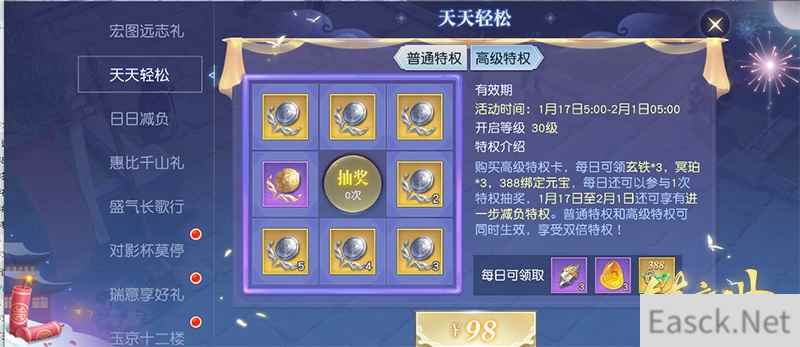春节减负,开心过大年 日常活动时间缩短、所有奖励保持不变的“新春特权”,让你轻松过大年、游戏长假两不误;“春节签到”里,长假期间每天登陆都有不同奖励送上! 1月24日除夕夜,《镇魔曲》还将与你一起守岁,每小时抽奖、跨年大礼包全部送上!鼠年翻牌、各类返利优惠等多重活动,也将陆续与天命者们见面,让你福利拿到手软,开开心心迎新年!
