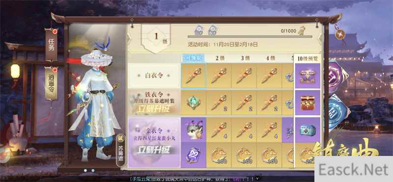 完成任务升级逍遥令,收获海量珍稀奖励 完成任务积累经验,天命者们能提升逍遥令等级,并获得不同奖励。白衣令、铁衣令、金衣令,逍遥令等级越高奖励越丰厚,敛神杵、化神套装等尽在其中!在逍遥城里探索所得的“逍遥御宝”,还能兑换全新玄佩碎片在内的多种珍稀道具,助力天命者们战力再升! 玄佩、伏魔,逍遥城中奖励多 不断探索逍遥城,天命者们将收集到各种玄佩碎片,并打造成全新装备“玄佩”,为天命者们附加利刃、技能效果提升等全方位加成!最重要的是,玄佩还能提供“伏魔值”,让天命者们在巅峰对决中占据更大优势!