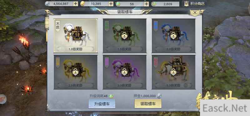 六种品质镖车,奖励各不相同 从白色到钻石,六种不同品质的镖车对应奖励不同,天命者们可升级不同品质的镖车,送到目的地即可返还押金,还有宝瓶、碧玉葫芦、乾坤袋等奖励,钻石镖车还能为帮会宝阁增加各级紫装、魂石、装备图纸等道具! 应对劫镖,自动防御机制启动 镖车奖励丰厚,自然有人觊觎。运送过程中,敌对帮会成员可拦劫攻击镖车、掉落各类货物,一旦帮会被击败,这些货物就将落入敌手!所以运送过程中,天命者们要小心提防,以保镖车万全!