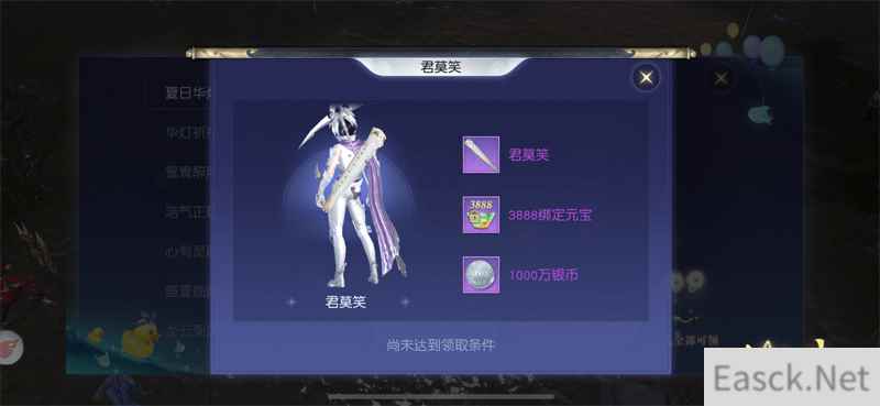 全部放飞后,收获背饰“君莫笑” 华灯祈福礼,珍稀奖励供兑换 天命者在放飞华灯后,将收获祭典组织者送上的礼物,除此之外若放飞到相应数量的华灯时,亦有“佳人醉”、“好事近”、“赏花时”、“相见欢”四种不同灯语材料入手。若能收集相当数量,则可至盛典上寻得兑换之处,换来“华灯祈福礼”。