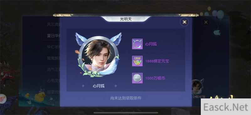 萌动“心月狐”头像框 三处所在,每一处能承载的华灯数量。若已放满,可静待华灯飘落后再行放飞(各处放飞重置时间不一,天命者可于活动界面查询)。每放满一处,盛典组织者便会送上不同礼物,以奖励天命者们为夏日祭所作努力:喜乐天的“远山不阻”坐骑、光明天的“心月狐”萌动头像框、自在天的“沐风冠”头饰,若三处皆放满,便有珍稀背饰“君莫笑”送上。此外,还有海量银币、绑元等财货备下,天命者们放飞华灯、妆满一处后,尚可待其恢复重置再行放飞,以此收获更多庆典礼物!