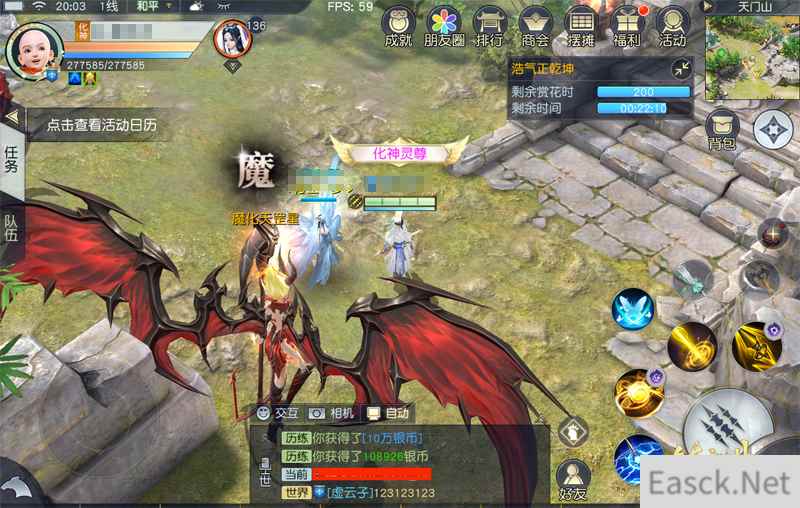 擂台之战畅快淋漓,擂台之外也战斗正酣。每逢中州盛典之际,总有妖邪趁机作乱,此次亦不例外。每日午间12点至14点、晚间18点至22点,每逢15分时便有魔化地煞星、魔化天罡星分别降临在黑山、天门山等处。天命者可结伴前往,击退这些妖物,以收获它们携带而至的“好事近”、“佳人醉”及银币等物,以资奖励。 夏日华灯、鸳鸯醉月,浮生半日奖励丰