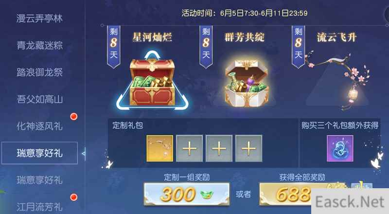 除此之外,瑞意享好礼、江月流芳礼、扶摇青云礼、蜜糖鲜果切、心语破玄机、还君明珠礼、天行御九歌、好运连绵礼、羲和光华礼等多重福利活动,也于端午期间持续进行之中。珍稀材料折扣返利、各类优惠力度爆炸,天命者可按需选购参与,趁着过节福利充足,让自己战力再升、早日化神!