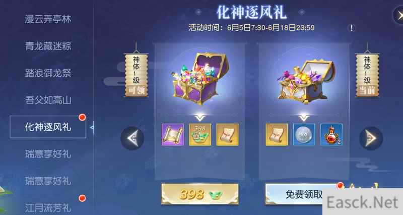多重福利活动进行,佳节酬宾实力升 端午佳节筹备工作繁忙,天命者们的实力提升也不容停滞,特别是全新化神境界,更需要天命者悉心打理。为此,中州众贤联合送上“化神逐风礼”,为天命者巩固境界、提升实力献上一份心力。